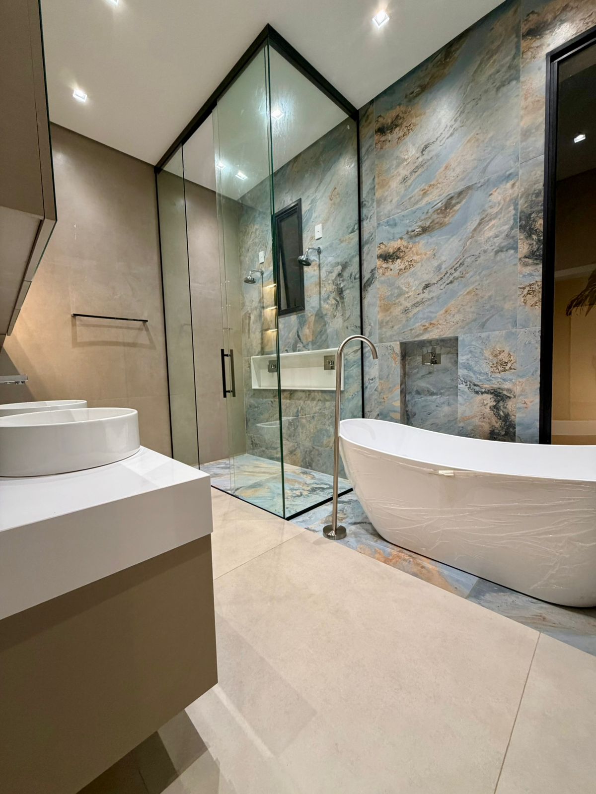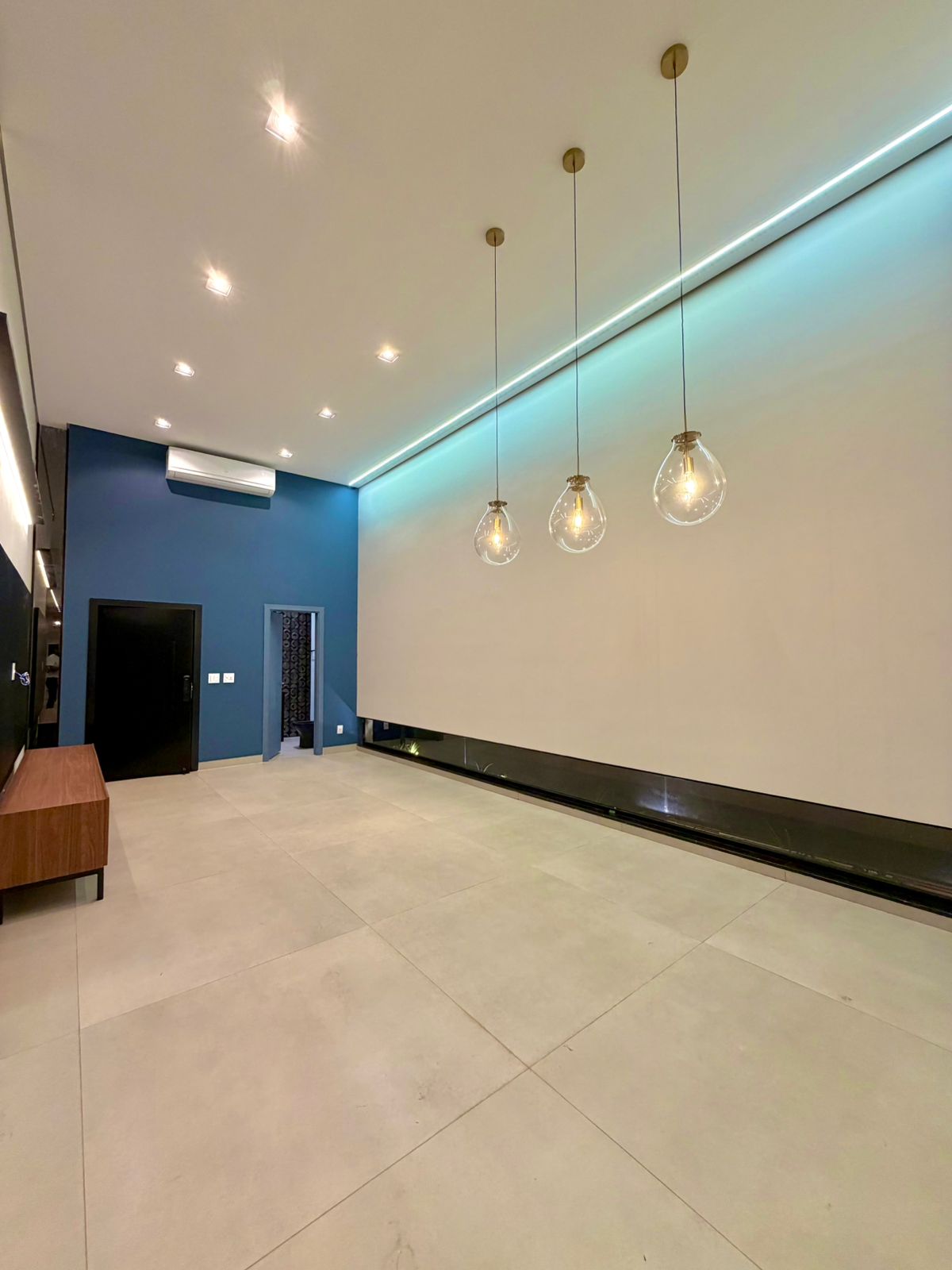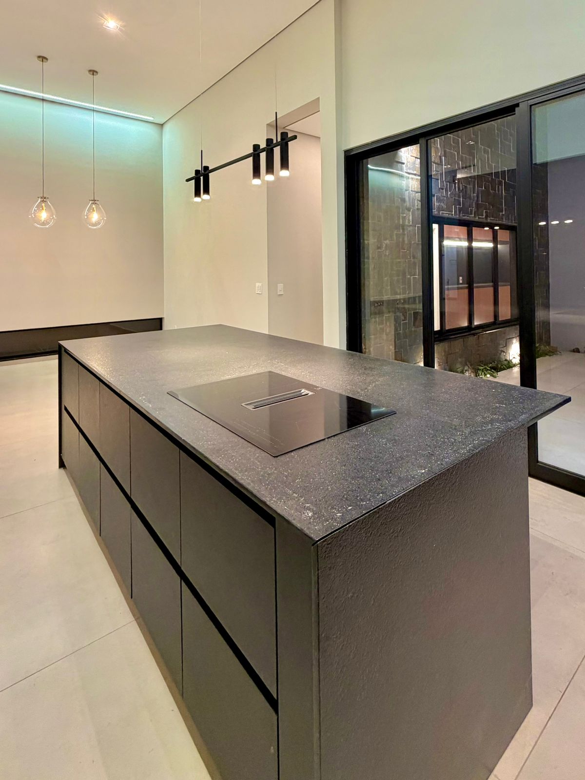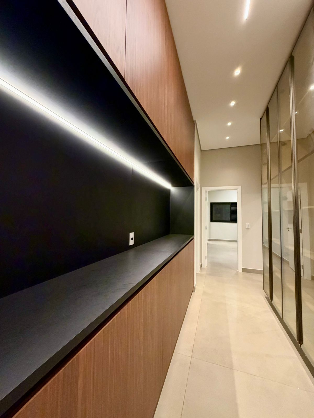 O interior revela ambientes sociais amplos, com pé-direito elevado, iluminação arquitetônica precisa e integração total entre salas, cozinha e área gourmet. Tudo pensado para receber bem, com estética contemporânea e atmosfera acolhedora.