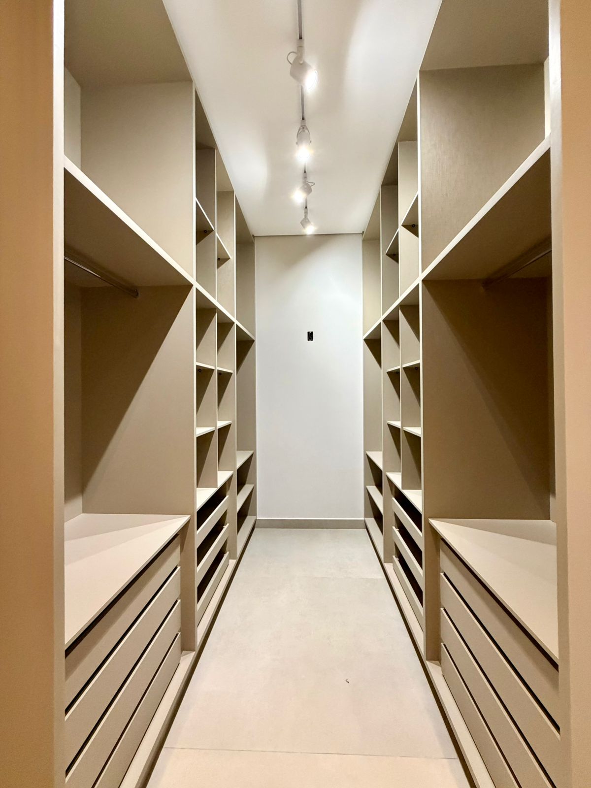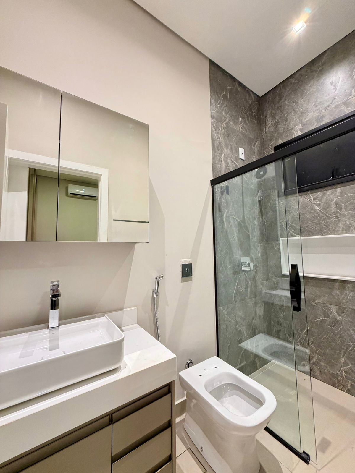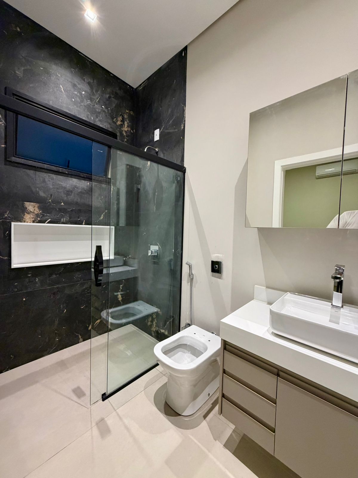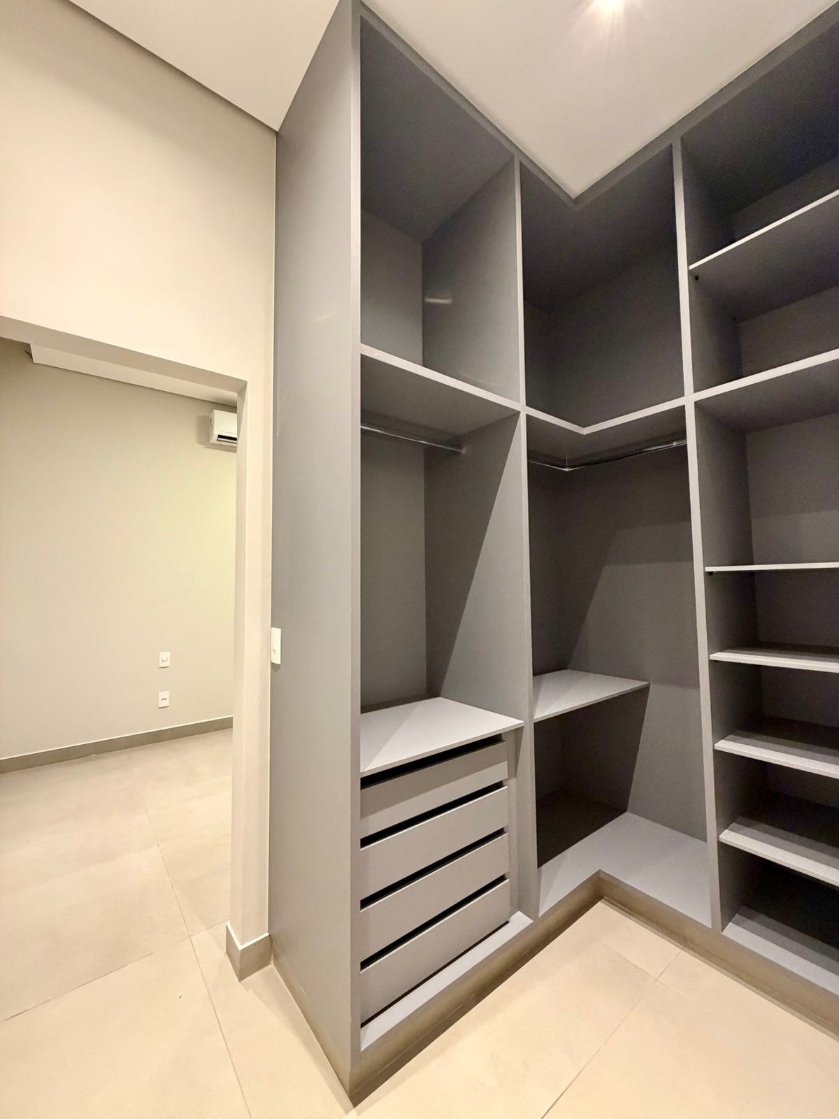 A casa conta com 4 suítes, todas com excelente dimensionamento, além de armários planejados e ar-condicionado já instalados, garantindo praticidade imediata e alto nível de conforto. A suíte master se destaca pelo espaço e pelo acabamento, entregando um verdadeiro refúgio dentro de casa.