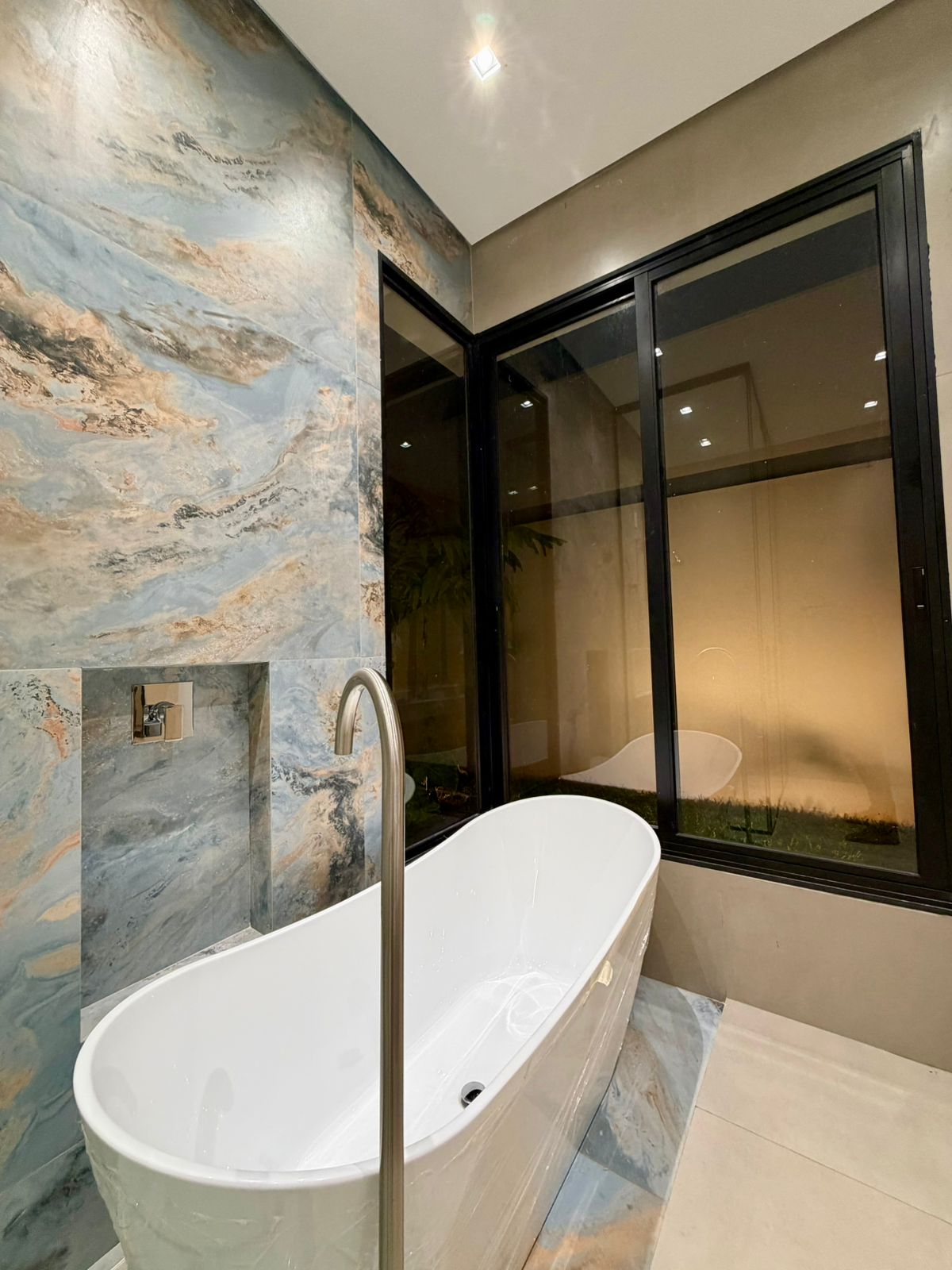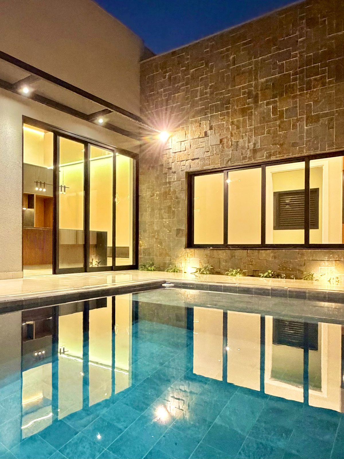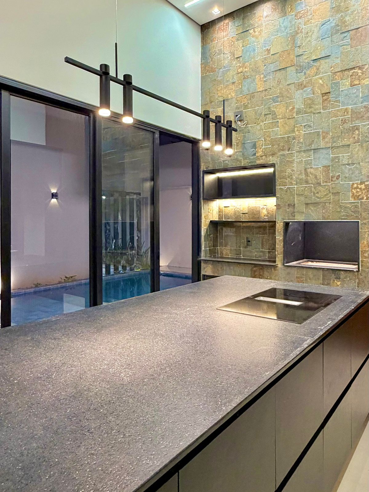 Na área externa, o lazer se integra ao projeto com naturalidade: piscina elegante, revestimentos sofisticados e total privacidade, criando um ambiente perfeito para relaxar ou receber.