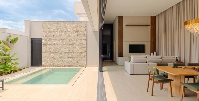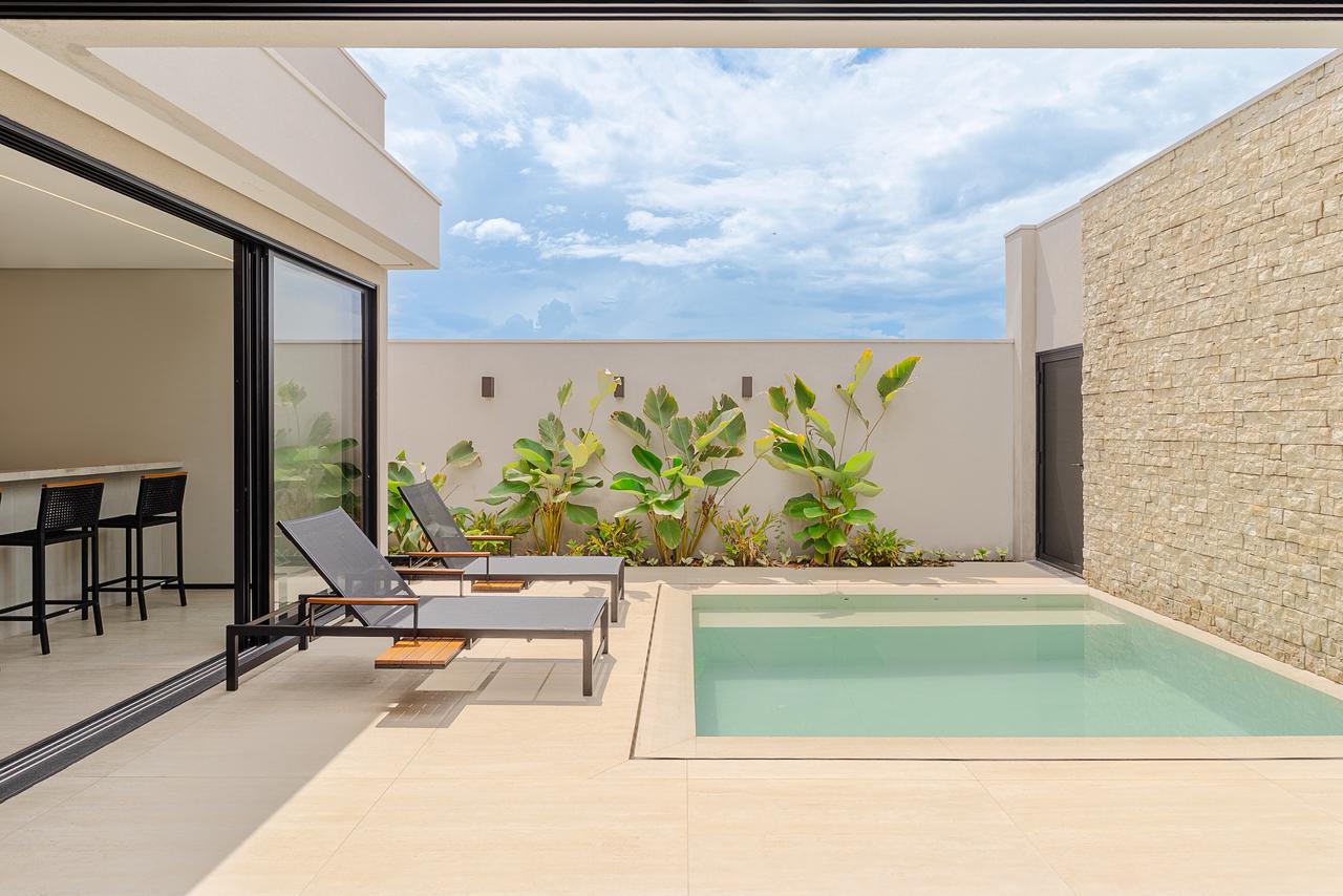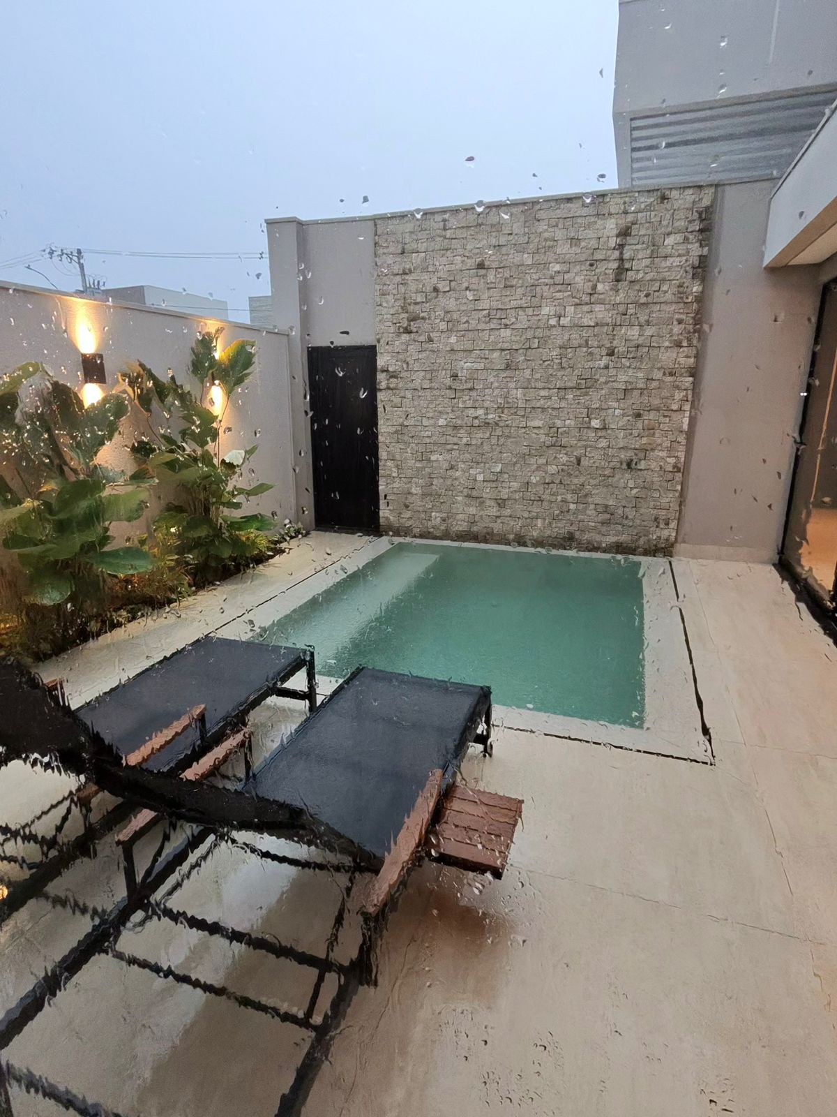 Casa à venda no Condomínio Damha III, com área construída de 215 m2 em terreno com 384,97 m2, sendo duas suítes comuns e uma suíte master com closet, um Escritório com banheiro individual podendo ser convertida a quarta suíte, cozinha (com coifa, cook top, forno e micro-ondas), sala de jantar e estar com pé direito duplo, lavanderia, área gourmet com churrasqueira, piscina aquecida, 4 vagas de garagem sendo 2 cobertas. Telhado com telhas termoacústicas, Iluminação em led, sistema de aquecimento solar com boiler de 800 litros, esquadrias de alumínio com portas persianas automáticas nas suítes , ar condicionado (nas suítes, escritório, sala de jantar, estar e área gourmet), móveis planejados, pisos e revestimentos de altão padrão, fachada em pedra Espanha, bancadas e balcões em quartzo Taj Mahal, lavatório em nanoglass, metais e louças de alta qualidade. Porta frontal ZDOOR’S com fechadura eletrônica. Localização privilegiada próximo à entrada da condomínio e área de lazer
